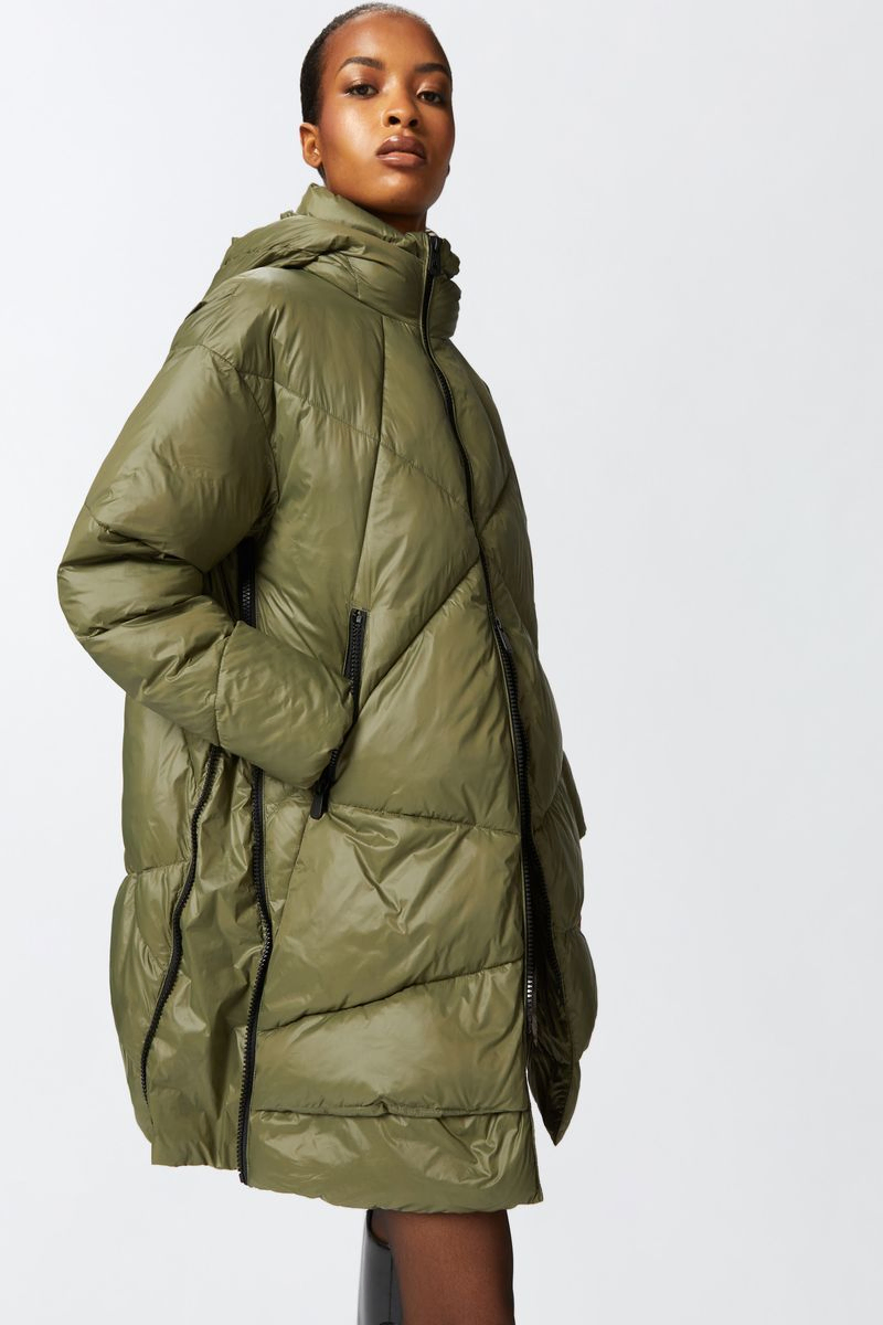 Piumino imbottito in tela tecnica con cappuccio donna Verde oliva Pinko Berton Magazzini